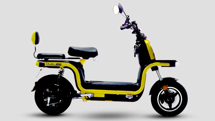 The Okinawa Dual 100 is powered by an electric motor, making it an electric scooter. Electric scooters use an electric motor as their primary source of propulsion, eliminating the need for traditional internal combustion engines.